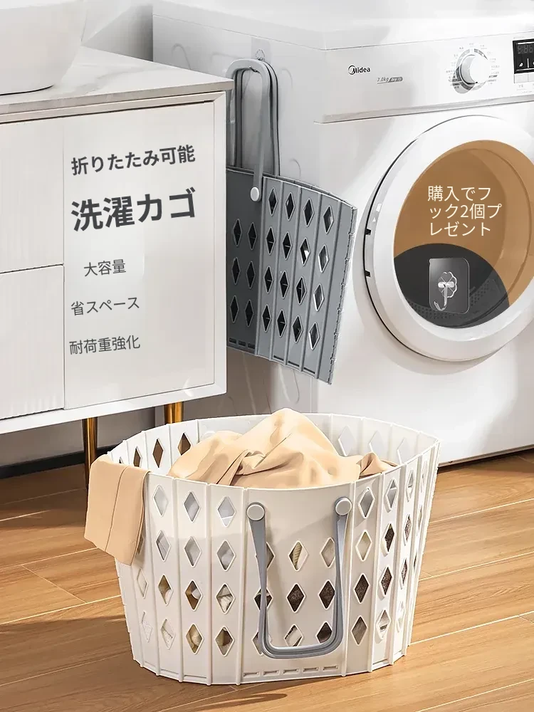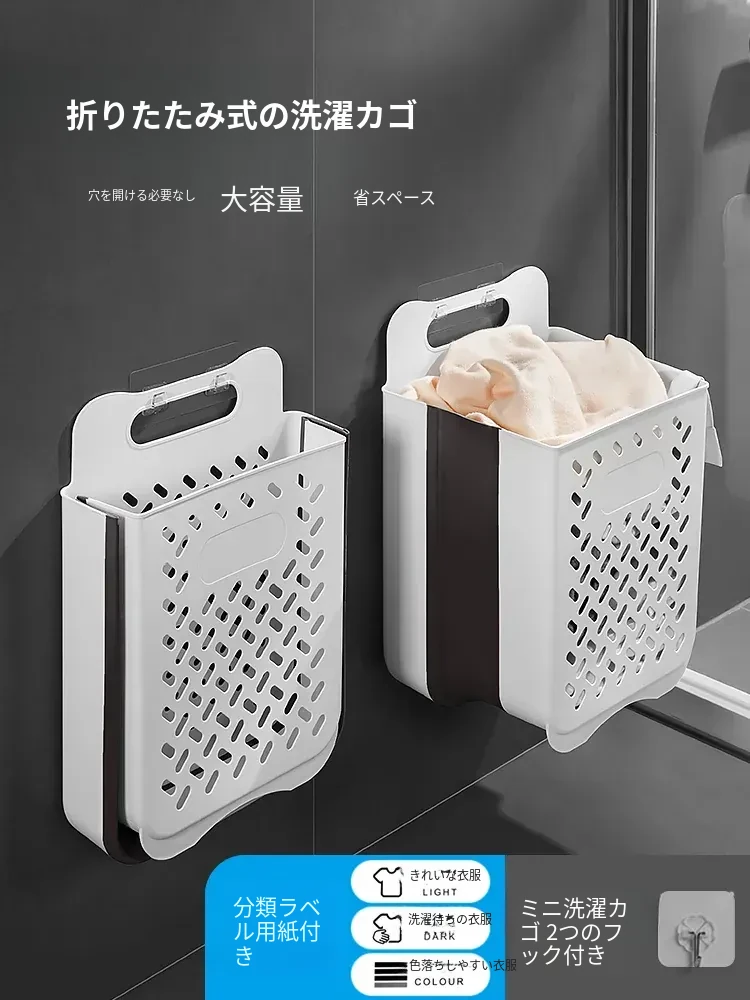 折りたたみ式洗濯物収納バスケット - 壁掛け可能で浴室やトイレにぴったり!家事を楽にする便利なおしゃれなデザイン。洗濯物をスッキリ整理整頓!