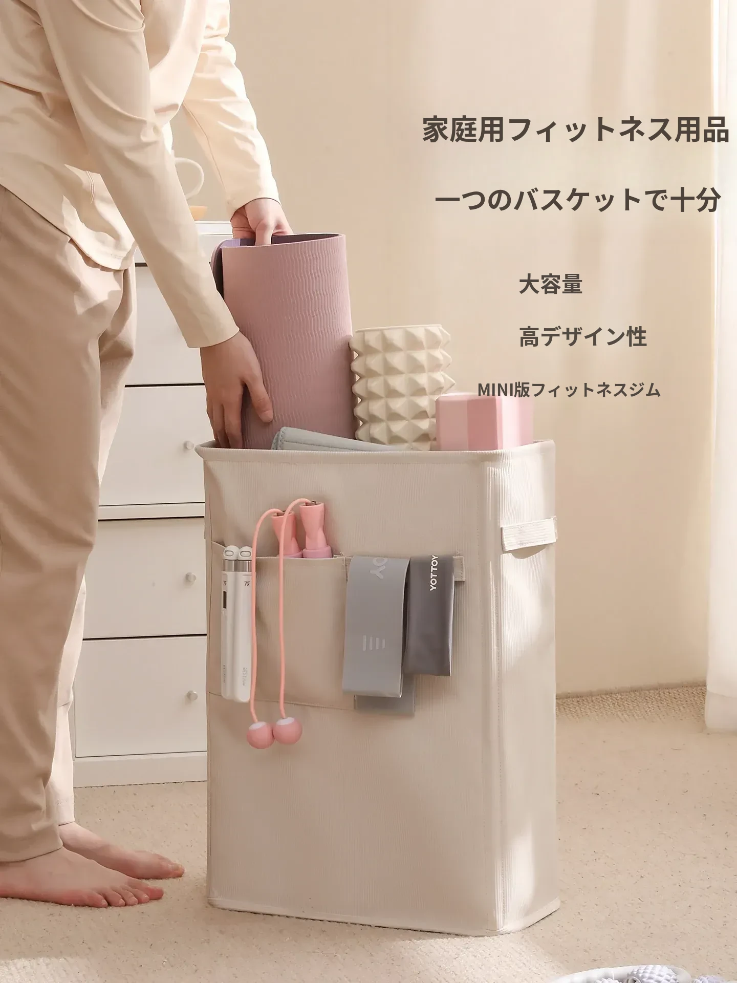 ヨガマット収納バスケット|家庭用フィットネスグッズ|スリムな隙間収納|折りたたみ式の洗濯かご|学生寮にもぴったり!整理整頓が簡単で、生活空間をすっきり保つ!