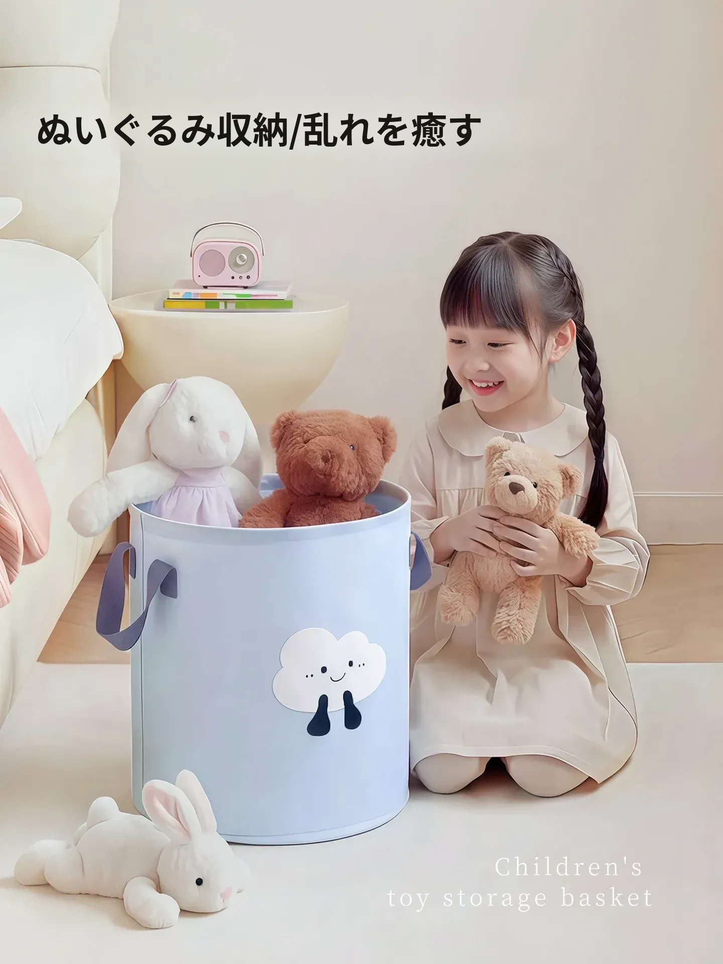 かわいいデザインの大容量おもちゃ収納バスケット!天縦の布製収納かごは、子供のおもちゃやぬいぐるみをすっきり整理。持ち運び便利なハンドル付きで、家の中をおしゃれに片付けましょう!