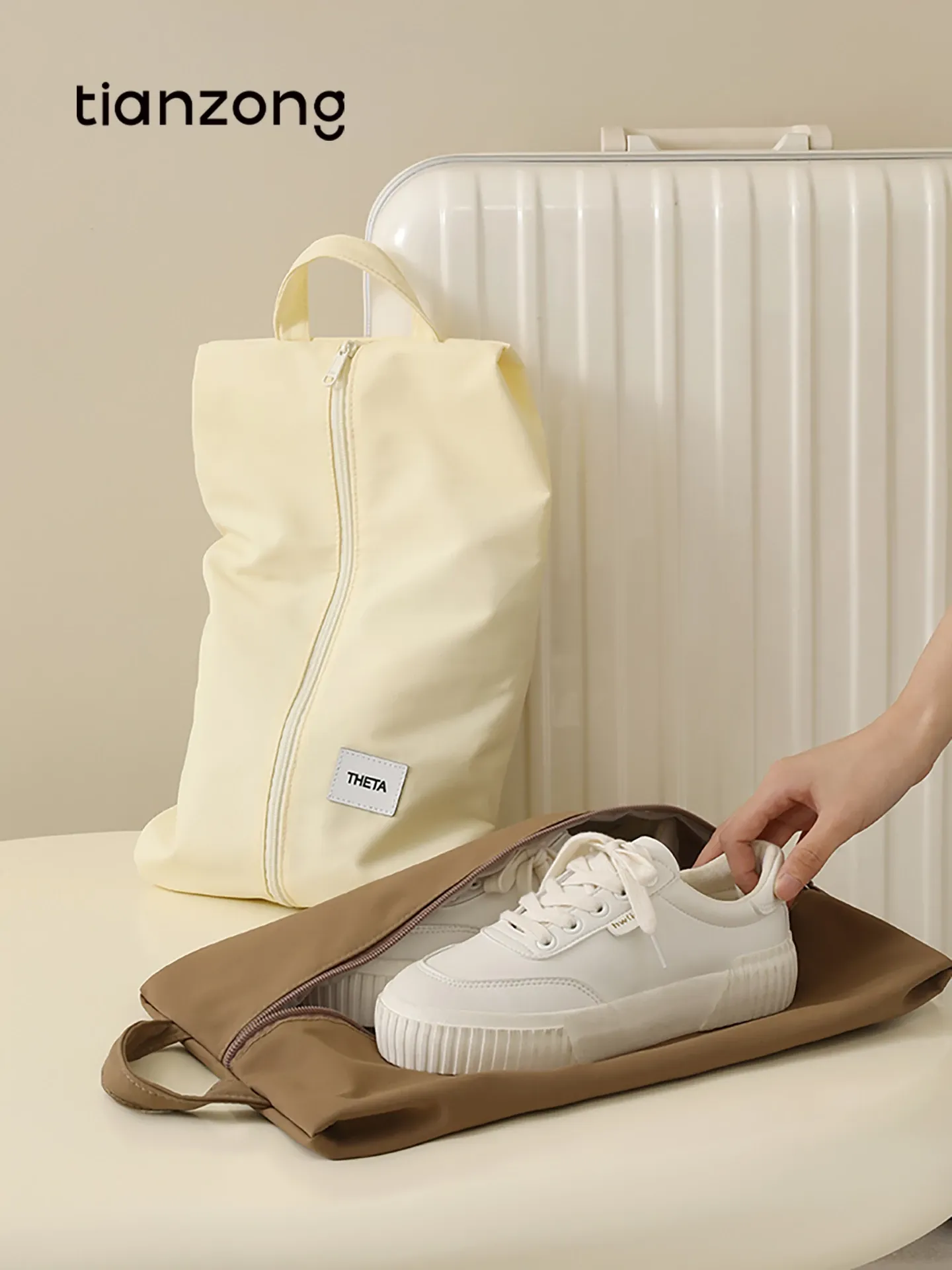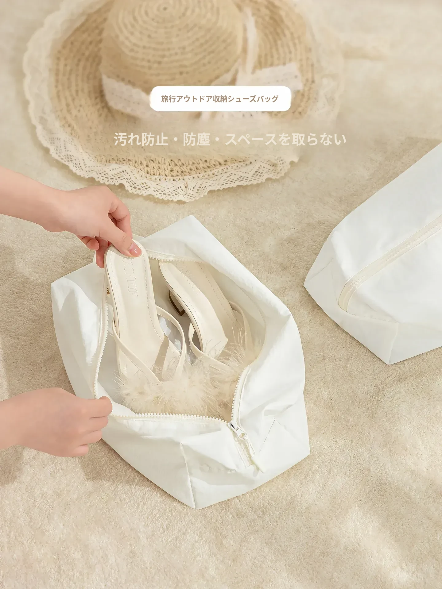 天縱トラベルシューズバッグ - 旅行や出張に最適!便利な靴収納袋で、スニーカーやスリッパもスッキリ整理。スーツケースにぴったりフィットする収納アイテム!あなたの旅をもっと快適に。