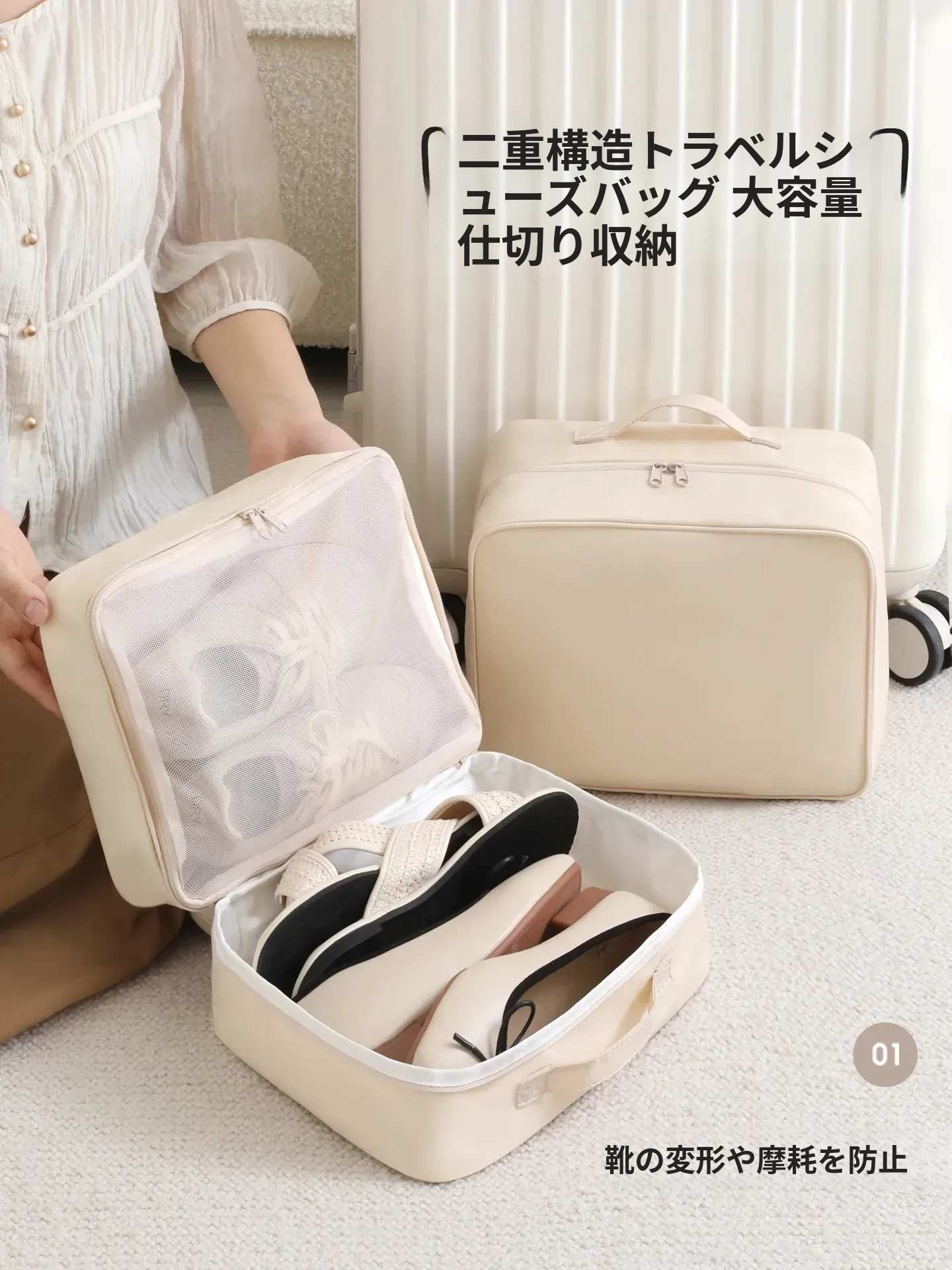 天縦シューズ収納バッグ - 旅行に最適な携帯型スーツケース用シューズポーチ!多機能で使いやすく、あなたの靴をきれいに整理。旅行のお供にぴったりな神アイテム!