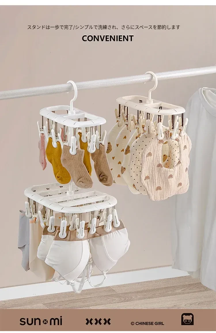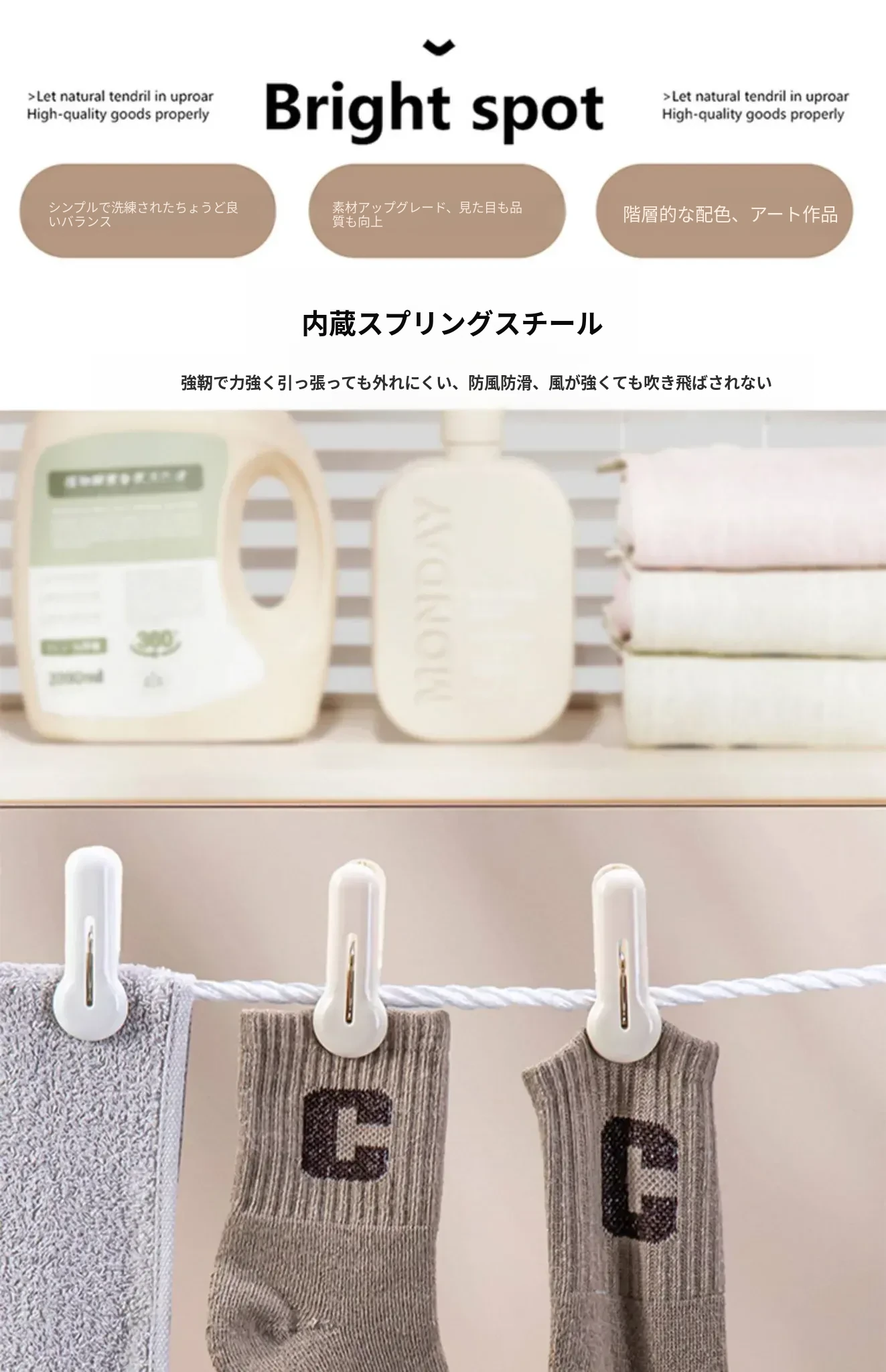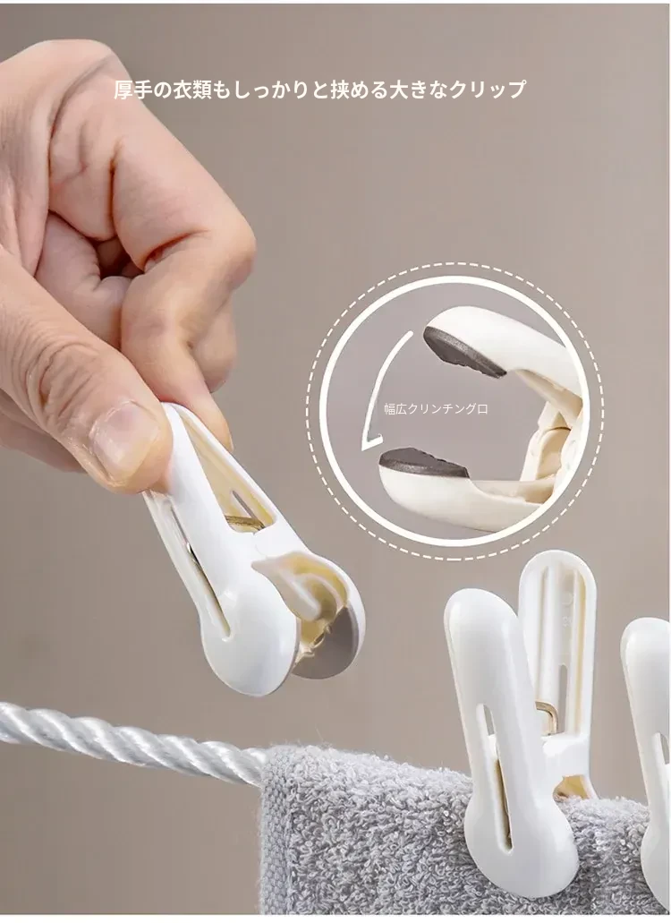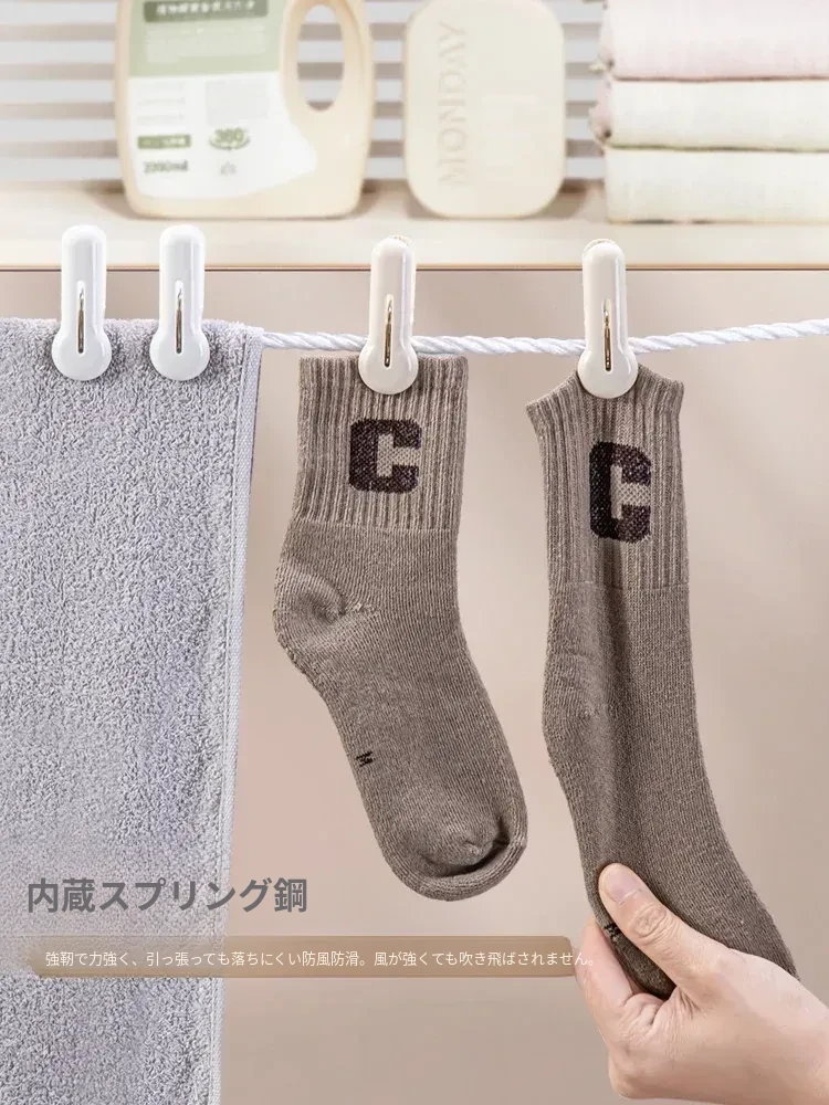 天才のクリップ!風に強い衣類や靴下をしっかり固定する多機能プラスチッククリップ。滑り止め機能付きで家庭で大活躍!